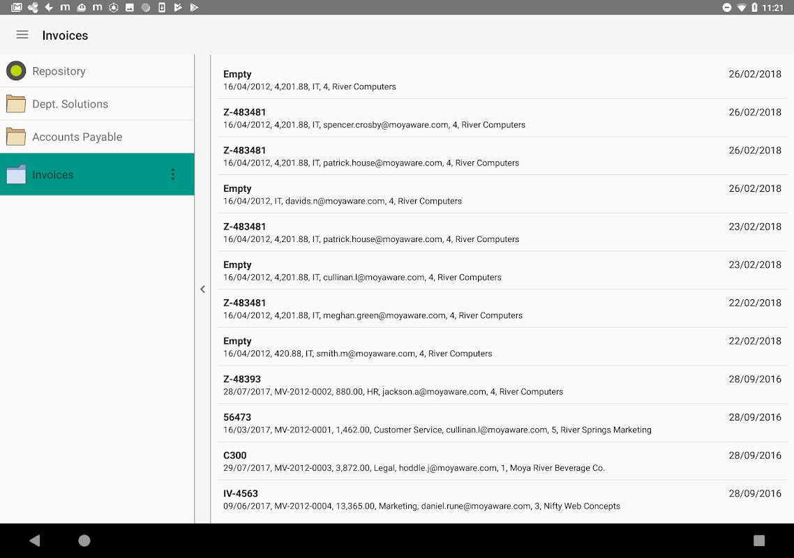 • Ver documentos y sus datos de índice asociados directamente dentro de la aplicación.