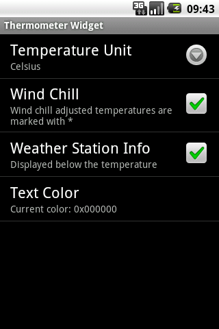 Shows the current outdoor temperature. Optionally with wind chill factored in.