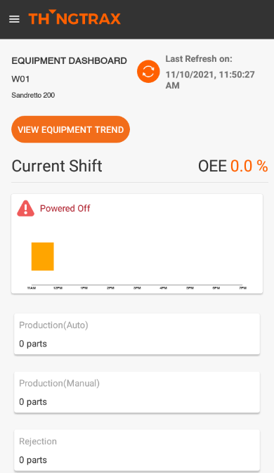 La aplicación ThingTrax proporciona un tablero para monitorear y rastrear el estado de las máquinas de fábrica