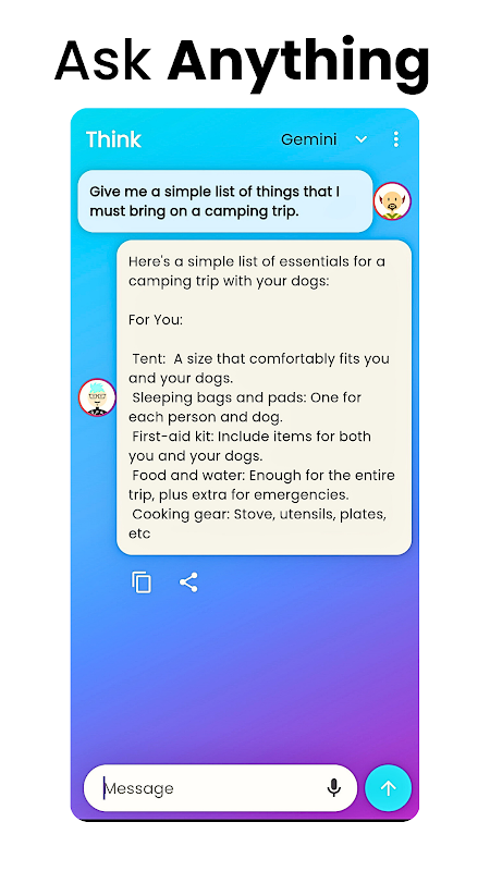 Presentamos Think, su asistente de IA definitivo diseñado para revolucionar la productividad. Libere todo el potencial de la IA con esta aplicación de vanguardia, que le permite generar texto, imágenes y resolver problemas matemáticos complejos sin esfuerzo.