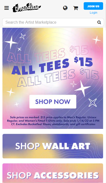 Threadless exists to help artists succeed. For over 20 years, we’ve partnered with hundreds of thousands of artists, promoting their independent art to millions of fans around the world. We are a diverse, global community of artists and those who support them.