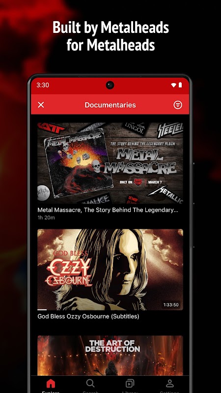 ¡Prepárate para rockear con la primera plataforma de transmisión de video a pedido del mundo dedicada completamente al Heavy Metal! Sumérgete en lo mejor del metal de todo el mundo con acceso a cientos de videos musicales, presentaciones en vivo, documentales y largometrajes.