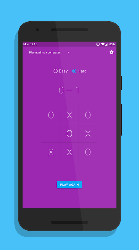 No desperdicies papel y ahorres el medio ambiente. Juega divertido y entretenido. Juego gratis de tres en raya con un hermoso diseño limpio en tu teléfono Android. Puedes jugar con tu amigo (multijugador) o con la computadora. ¡Puedes intentar vencer a la IA en el modo difícil!