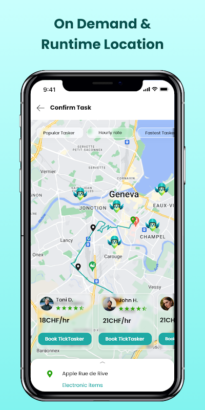 4. Navegue a través de nuestra lista de TickTaskers por habilidades, revisiones y tarifa por hora o haga que la aplicación elija automáticamente un TickTasker para usted