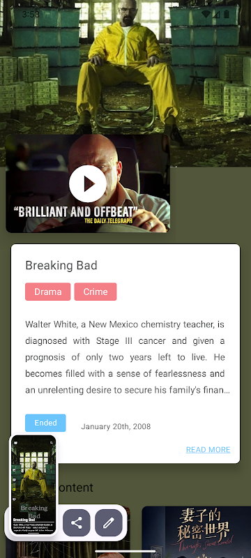 * Los usuarios pueden ver la lista de las últimas series de televisión de su elección desde la base de datos TMDB.