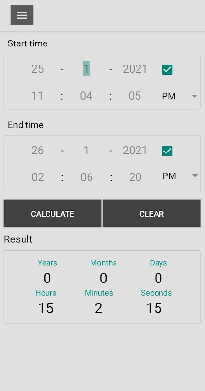 La aplicación Calculadora de tiempo hace que los cálculos de tiempo sean simples y rápidos. Puede obtener la duración en años, meses, días, horas, minutos y segundos entre dos fechas.