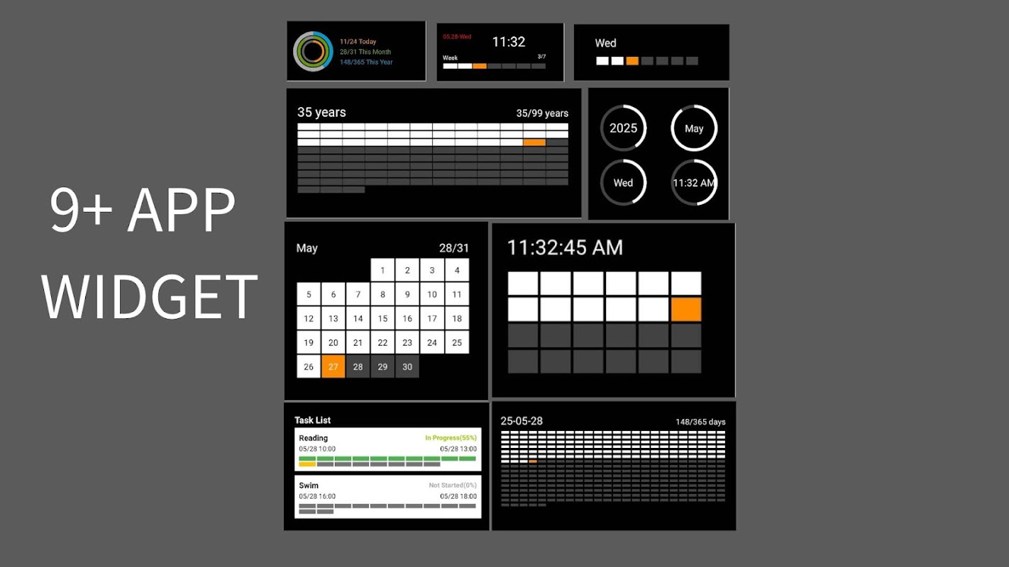 — Distingue el pasado, el presente y el futuro con colores. Conecta cuadrículas diarias, semanales, mensuales, anuales y de vida. Los widgets de escritorio simplifican la gestión del tiempo.