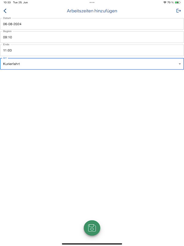 -Agregar tarea de trabajo con fecha, hora de inicio, hora de finalización y tipo de trabajo realizado