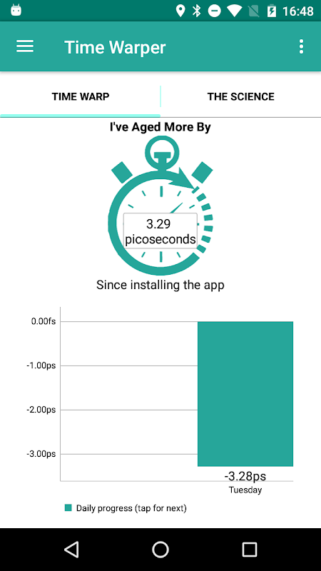 The app calculates the difference in the rate at which time flows for you compared to someone standing still at sea level (measuring what is known as International Atomic Time) - the app shows how quickly or slowly you are ageing compared to this person.