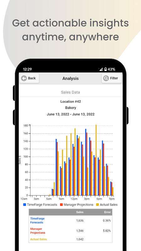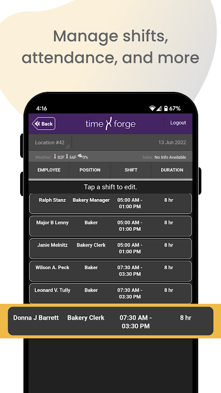 Con la aplicación TimeForge Manager, tiene la libertad de administrar su negocio sin estar atado a su computadora. Ya sea que esté monitoreando a sus empleados registrados u observando sus costos laborales a lo largo del día, estará preparado para tomar las decisiones correctas para su personal.