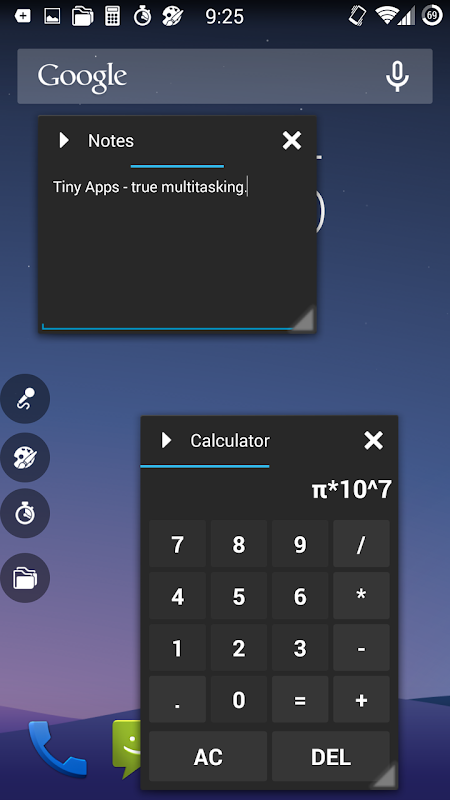 Tiny Apps are 18 floating apps, shown in small windows and staying on top of any other app. This makes multitasking a lot easier and boosts everyone's productivity!