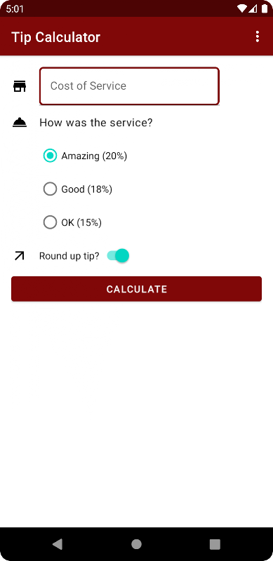 Esta aplicación te ayudará a calcular los valores de las propinas con un porcentaje personalizado.