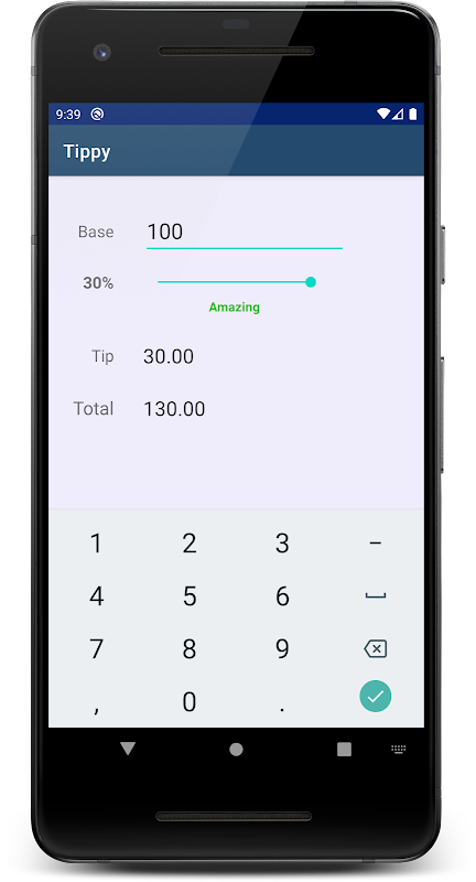 Tippy es una calculadora de propinas simple creada con fines educativos, 100% gratuita y de código abierto. Después de ingresar una cantidad base y un porcentaje de propina, la aplicación calculará la propina y el total por usted. También implementamos una animación de porcentaje de propina y un pie de página para hacer que nuestra aplicación sea más única.