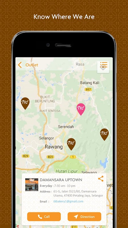 * Localizar puntos de venta TK cerca de usted, ver los horarios comerciales y obtener indicaciones