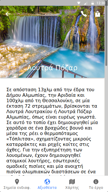 Το έργο αποσκοπεί στην προώθηση του τουρισμού στη διασυνοριακή περιοχή Ελλάδας – π.Γ.Δ.Μ. με έμφαση στα σημαντικά υδάτινα σώματα και τις ιαματικές πηγές, αξιοποιώντας την σύγχρονη τεχνολογία, καινοτόμες μορφές τουριστικής προβολής καθώς και τη βελτίωση του συνολικού τουριστικού προϊόντος μέσω δράσεων κατάρτισης. Σκοπός του έργου είναι η οργάνωση των πόλεων με ιαματικές πηγές (spa towns), η διασφάλιση υψηλής ποιότητας του τουριστικού προϊόντος, η διαμόρφωση κοινής τουριστικής ταυτότητας με εξειδίκευση στην κάθε περιοχή, προώθησης και διαφήμισης καθώς και καινοτόμων εφαρμογών. Τα αναμενόμενα αποτελέσματα του έργου είναι η τουριστική ανάδειξη των περιοχών με ιαματικές πηγές, η διασφάλιση και η ανάδειξη πολιτικής ποιότητας που θα ακολουθούν οι εταίροι, η αύξηση της επισκεψιμότητας στις περιοχές και η εξασφάλιση υπηρεσιών υψηλής ποιότητας των τουριστικών και μη τουριστικών επιχειρήσεων της περιοχής εφαρμογής.