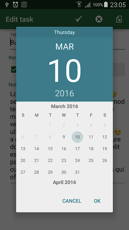 • Just add your task in 2 clicks Set up and receive push notifications. Easy and quick to set reminders.