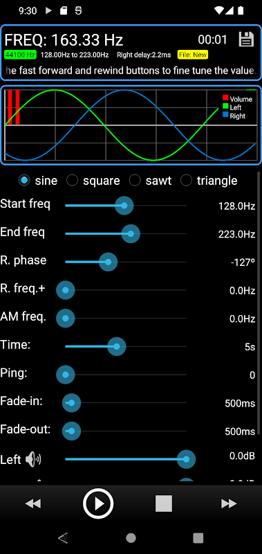 ● Generador de tonos de barrido (lineal o logarítmico para músicos)