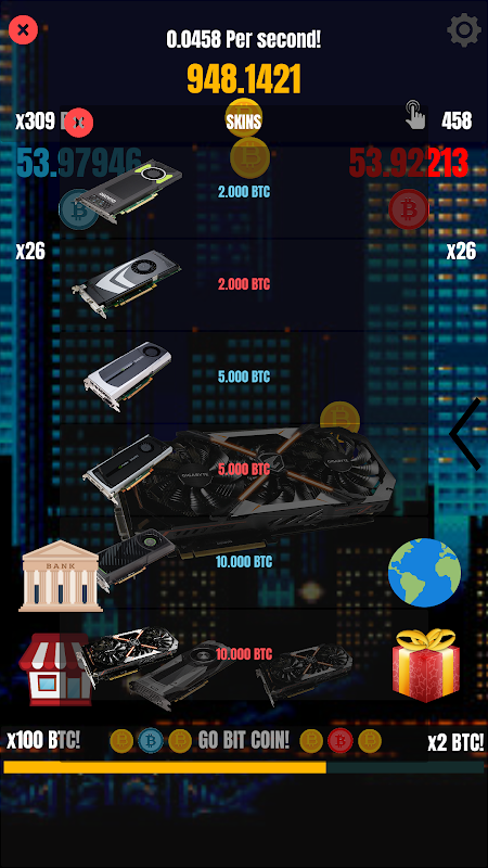 Покупайте скины на видеокарту, так же в игре добавлены два типа биткоинов.