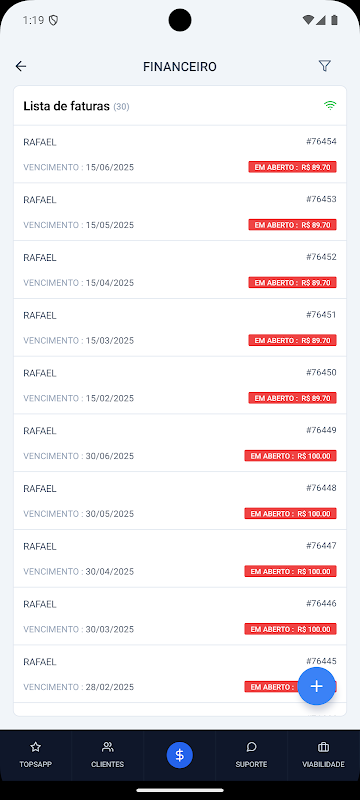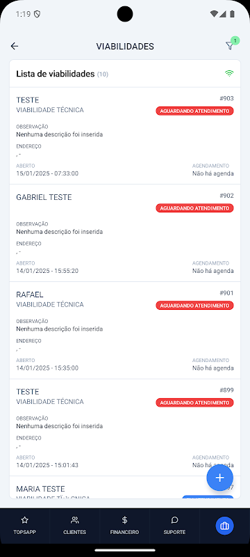 TopSapp v2 fue creado para ofrecer una solución completa e integrada para la gestión empresarial eficiente, permitiendo el control centralizado de varias áreas, como clientes, facturas, soporte técnico, viabilidad e inventario. Con él, puede administrar y editar fácilmente la información del cliente, realizar un seguimiento del estado de los servicios contratados y navegar con precisión hasta la dirección o ubicación del cliente.