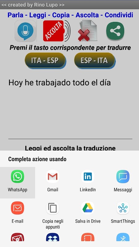 Habla o escribe en italiano o español, traduce por escrito o habla en el idioma elegido, traducirá tu voz y oirá la pronunciación de los resultados traducidos.
