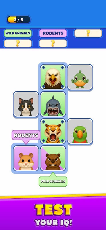 Sumérgete en Trait Linker, un juego de puzles original y adictivo donde la lógica y la observación son claves para la victoria. Tu misión: alinear personajes con los mismos rasgos en la misma fila o columna. ¡Es fácil empezar, pero se vuelve increíblemente ingenioso a medida que subes de nivel!