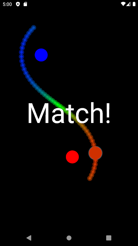 Toca la pantalla y deslízate para mover las bolas. Observó la trayectoria predicha en tiempo real. Presta atención al color de la trayectoria: indica lo cerca que está de las bolas rojas y azules. Observa también el tamaño y el brillo de las bolas: está relacionado con la fuerza de la gravedad.