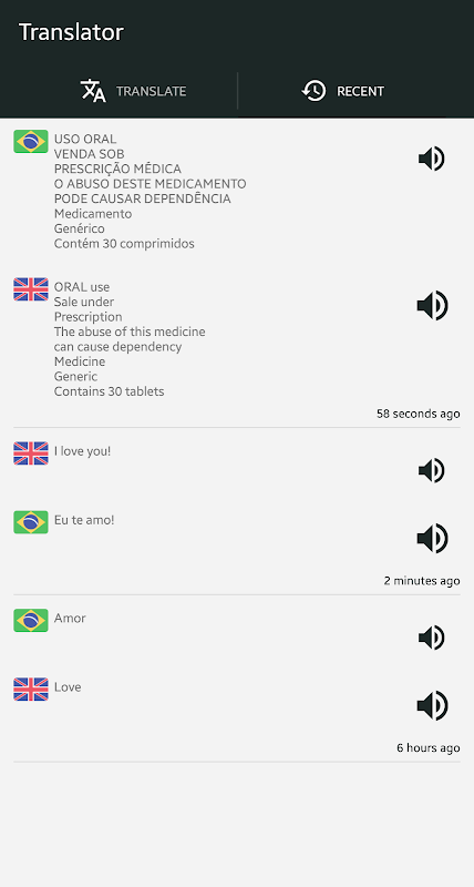 Comparta el sonido de las traducciones con amigos en WhatsApp, Messanger y otros chats.