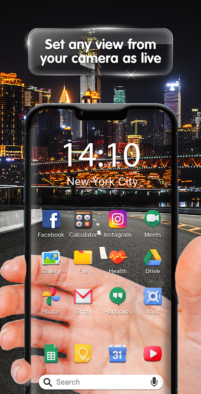 Pruebe esta gran combinación de cámara y fondo de pantalla, ¡le permite hacer que la pantalla sea transparente usando la cámara del teléfono! Así que haga que la pantalla de su teléfono inteligente sea transparente con esta pantalla de cámara transparente.