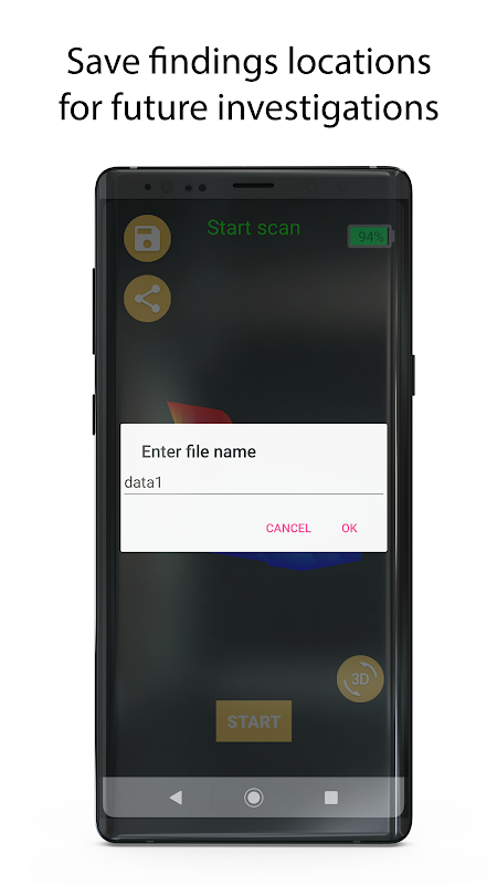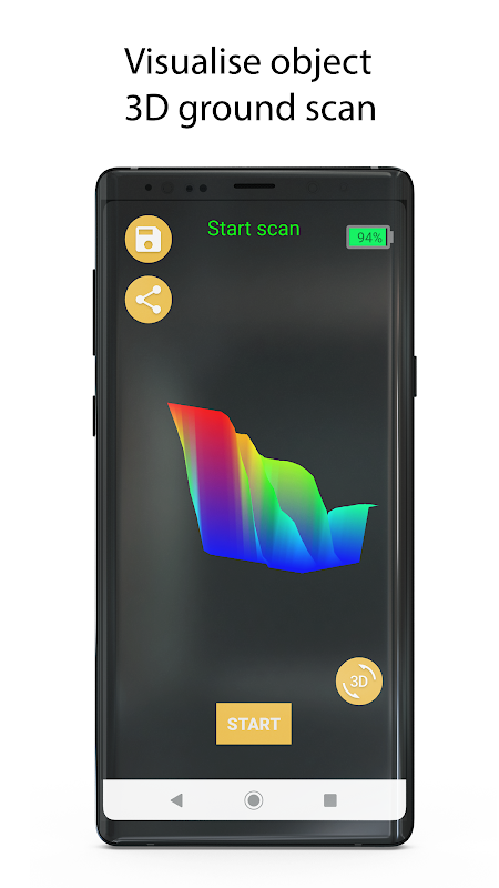 La aplicación TreasurHunter3D está diseñada para sincronizarse perfectamente con los dispositivos detectores de metales TreasurHunter3D™ que hacen visibles los tesoros subterráneos. Permite al usuario descubrir y visualizar objetos que están enterrados hasta 30 m bajo tierra con el escaneo de mayor resolución jamás disponible.