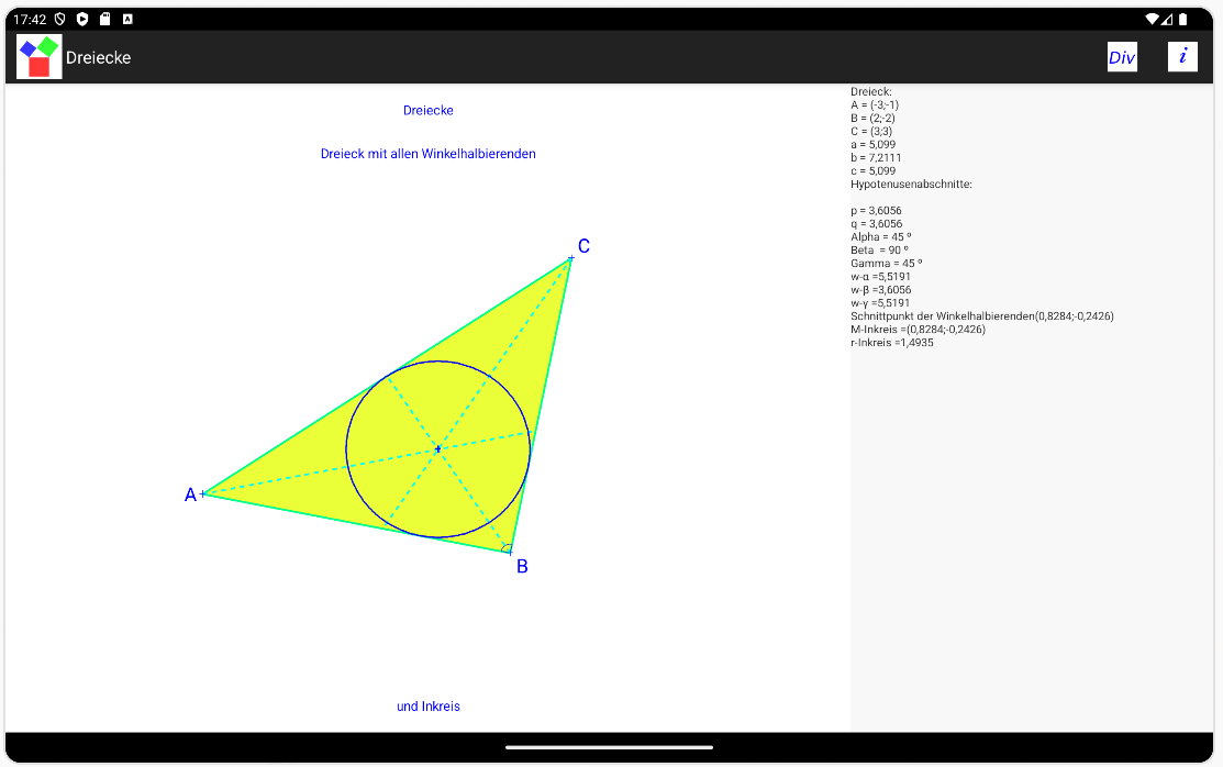 La aplicación Triángulos calcula todas las longitudes y ángulos del triángulo especificado.