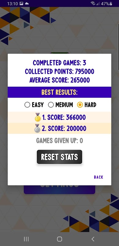 Hay tres niveles de dificultad en el juego: Fácil, Medio, Difícil.