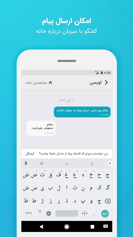 - درباره خانه ای که انتخاب کردهای سوال داری؟ به میزبان پیام بده و با او صحبت کن.