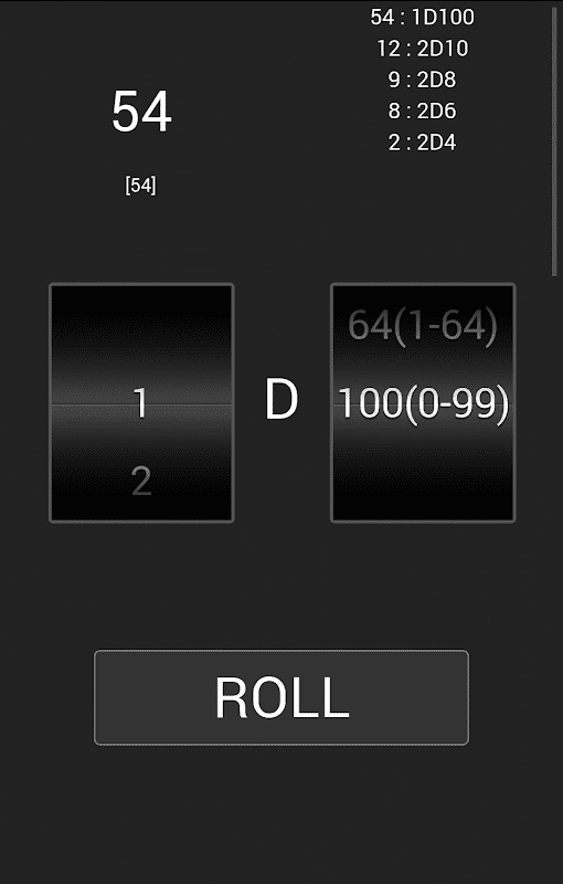 ダイスの個数と種類をスワイプで選択してROLLボタンを押すだけでロール結果がわかります。