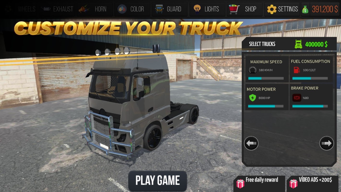 🚛 No te decepcionamos con los modelos de camiones y te ofrecemos 5 modelos de camiones. ¡Así que puedes usar cualquier modelo de camión que te robe el corazón! Además, no se limita a esto, gracias a las opciones de modificación, puede decorar su vehículo como desee. Puede cambiar el color de su vehículo, mejorar sus llantas y escape, e incluso colocar faros LED.
