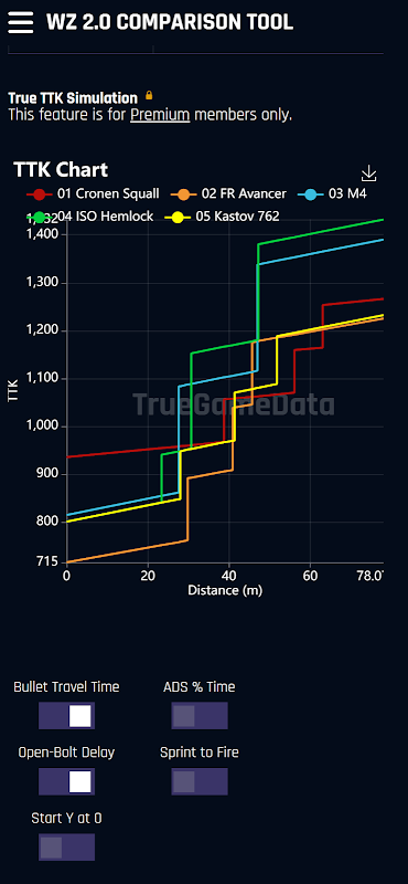 Simulación True TTK (Premium): acceda a datos TTK realistas para varios niveles de precisión y rangos de combate.