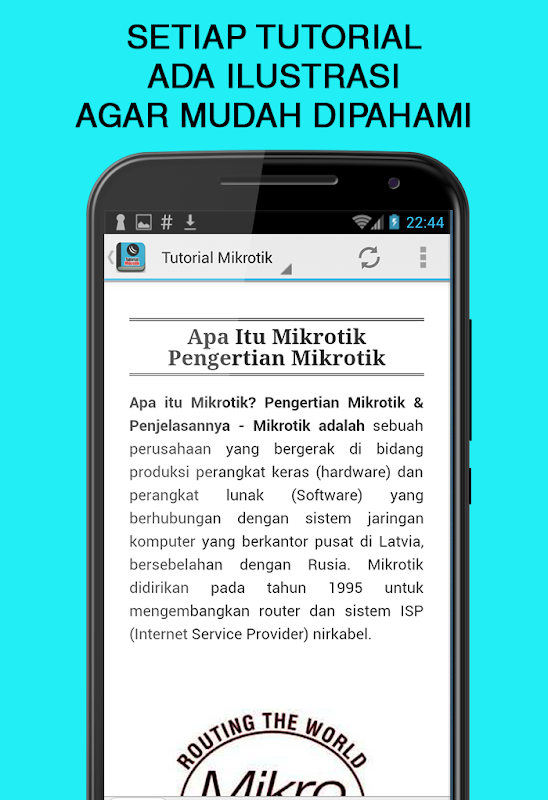 Este bertuuan aplicación que le ayudará a conocer y aprender cosas diferentes sobre Mikrotik iniciar daripengetahuan comprensión básica de los términos, hasta tutorial avanzado. En el interior hay más de 150 tutoriales sobre Mikrotik equipados con ilustraciones claras y explicaciones paso a paso. Esperando, para aquellos de ustedes que están aprendiendo Mikrotik necesario para instalar esta aplicación.