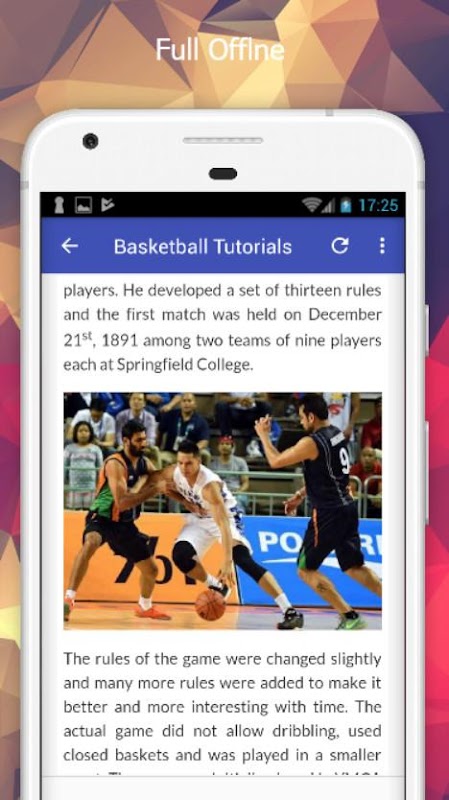 Tutorials for Basketball Offline is a complete application for those of you who want to learn Basketball easily and for free. There are dozens and even hundreds of Basketball tutorials starting to base for beginners to advanced. All these tutorials you can read offline without the need to connect to the internet or mobile data.