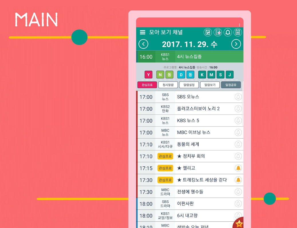 - 예약 알람 순서 설정 지원(방송순, 채널순, 알림순등)