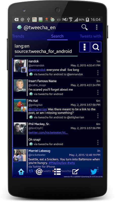 - Función de traducción (mantenga presionado el tweet, trabaje con la aplicación de traducción de Google)