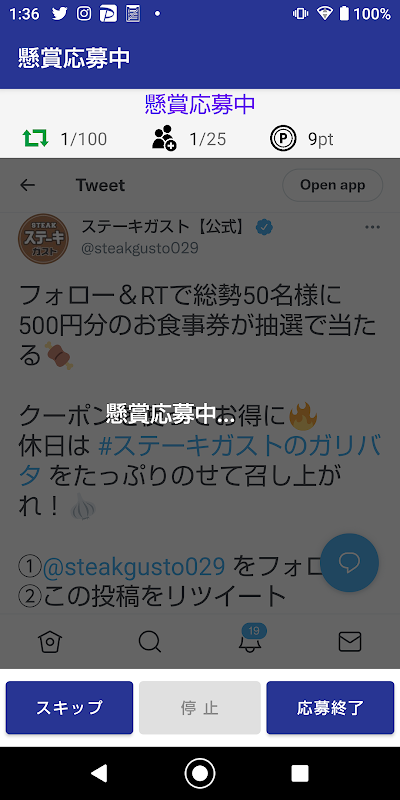 Es una aplicación que puedes postularte automáticamente al sorteo en Twitter con un solo clic.