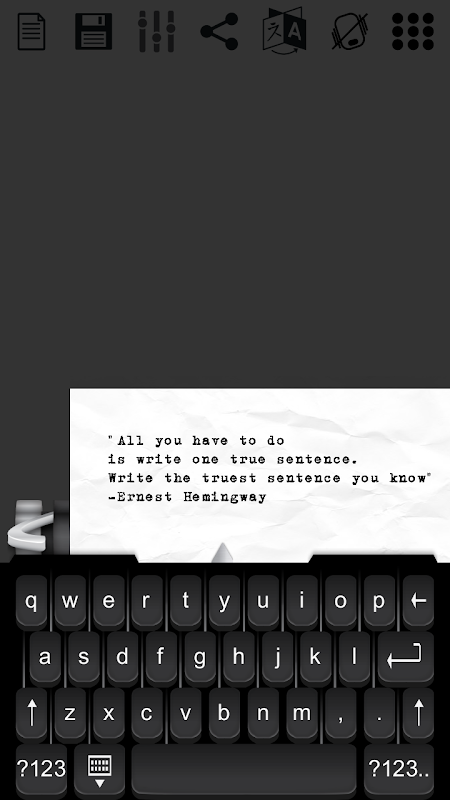 ¡Atrévete a ser creativo con esta máquina de escribir virtual! Inspírate con su sonido y sensación, experimentando cómo muchos grandes escritores crearon su obra maestra. Comparte tu escritura en cualquier plataforma de redes sociales instalada en tu dispositivo (es decir, Instagram, Whatsapp, Dropbox, Gmail). Esta aplicación no está relacionada con el popular Hanx Writer en iOS, pero ofrece algunas de las mismas funciones para los usuarios de Android.