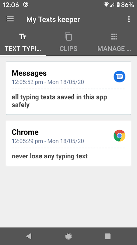 ¿Texto escrito borrado accidentalmente? No preocupación. Typing Saver: la aplicación Keylogger para Android ya guardó el texto para usted.