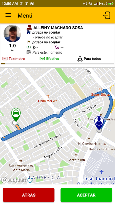 8. Permite que el conductor ejecute el proceso de las solicitudes, aceptar, rechazar, cancelar y completar.