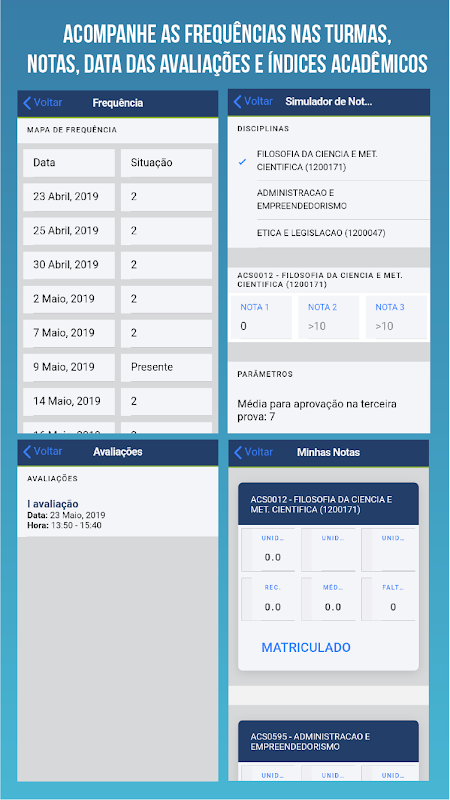 - Visualização das Notas e faltas das disciplinas matriculadas