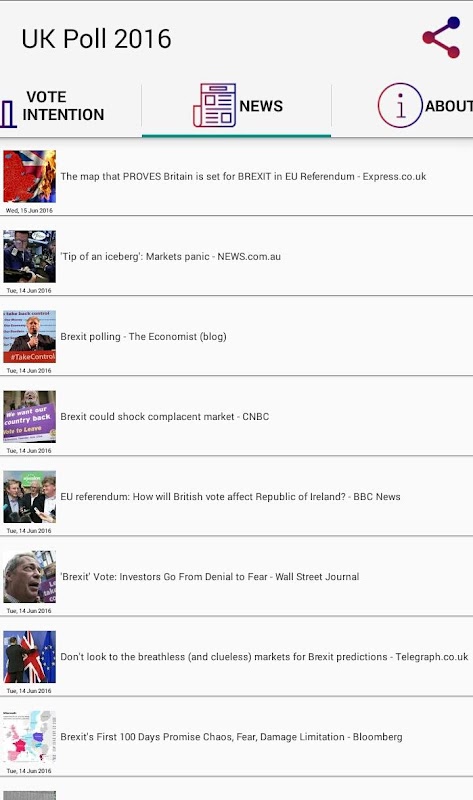- Participation in voting that is conducted through the application - View of the voting intention of the British referendum - Access to the latest news regarding the British referendum - Ability to use Social Media sharing capabilities, (Facebook, Twitter) as well as sharing by e-mail