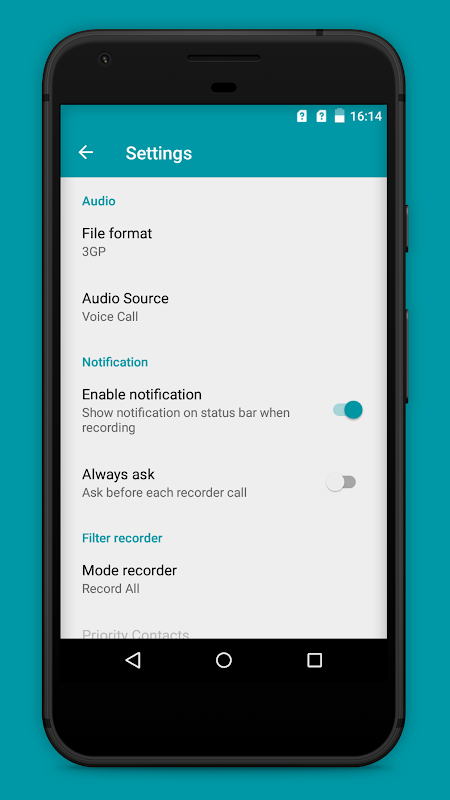Recording filter option enables you to record all calls, contacts or only unknown numbers. You can even choose recording option for each contact in your phonebook separately.