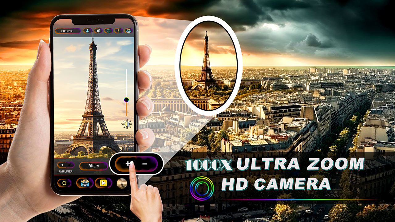La aplicación 1000x Ultra Zoom Camera HD transfiere su experiencia de fotografía móvil al siguiente nivel con un enfoque de zoom de 1000x.