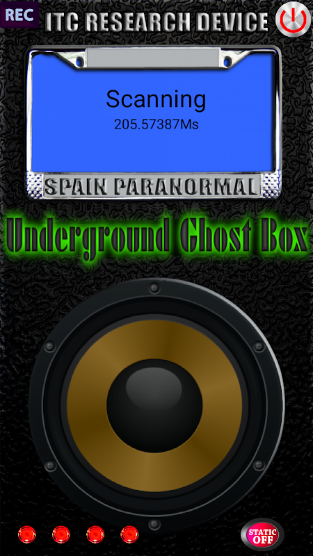 This Ghost Box uses only Spanish reversed audio set of banks in main function mode, and scan rate is set by the sensors readings of your phone (magnetic compass, pitch and roll) or in manual mode with plus and minus buttons if device dont have magnetic compass.