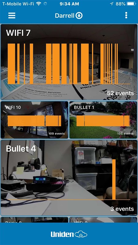 Vea sus cámaras Uniden Security Cloud, reproducción con alertas y notificaciones