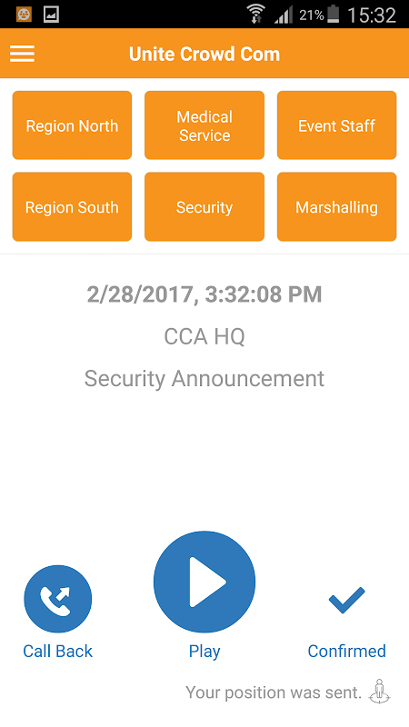 Unite Crowd Com is a new kind of VoIP team communication app. It allows an operator to make short voice announcements to groups of mobile users via a web interface. These announcements are played back automatically on the users' devices without requiring any user interaction.